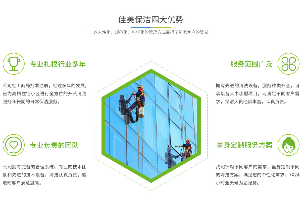 馬鞍山市佳美保潔服務(wù)有限公司是一家經(jīng)工商部門批準(zhǔn),具有法人資格專業(yè)清洗,馬鞍山保潔服務(wù)的公司,自創(chuàng)辦以來,一直致力于企業(yè),家庭,賓館,學(xué)校,別墅,酒店,商廈,公共設(shè)施等場所提供科學(xué)的日常保潔和清潔保護(hù)的服務(wù)公司,有著豐富的管理服務(wù)和保潔經(jīng)驗(yàn)...